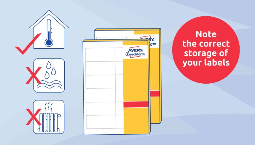 - Protect your labels from moisture and direct sunlight and heat. Please do not store near heat sources (heating).