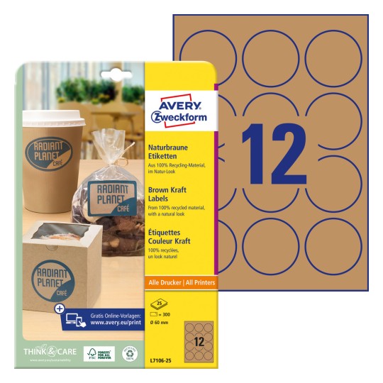 The square brown Kraft labels L7110-25 with the format 62x42mm from AVERY will give your products that contemporary and natural look.