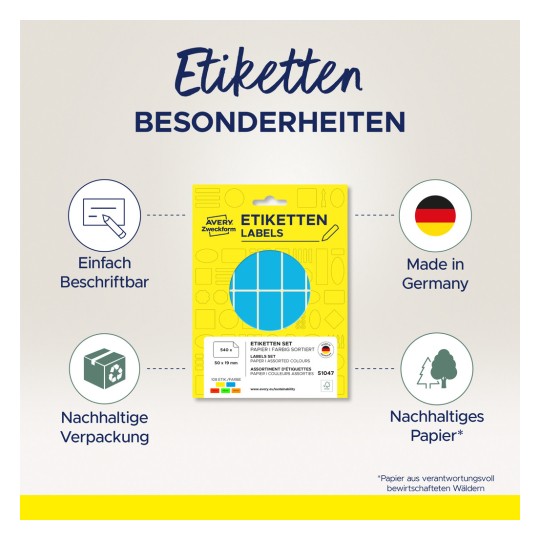 The multipurpose labels are not only environmentally friendly, the versatile stickers offer you the proven top quality of Avery with reliably strong and permanent adhesion on all kinds of different surfaces.
