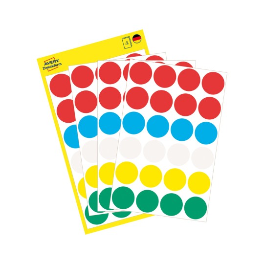 The yellow, self-adhesive marking dots 3013 with 8mm diameter from AVERY are perfect for marking, organising, planning and filing. 416 round marking dots on sheets per pack.